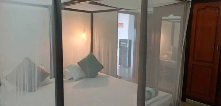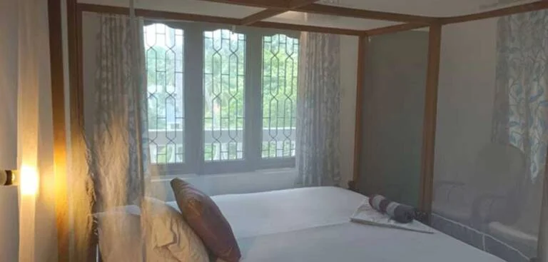 Both rooms have spacious shower room, storage space, AC, large double bed that can split to two singles, mosquito nets, ceiling fan and a safe. A third bed can easily be accommodated in these rooms for family stays.